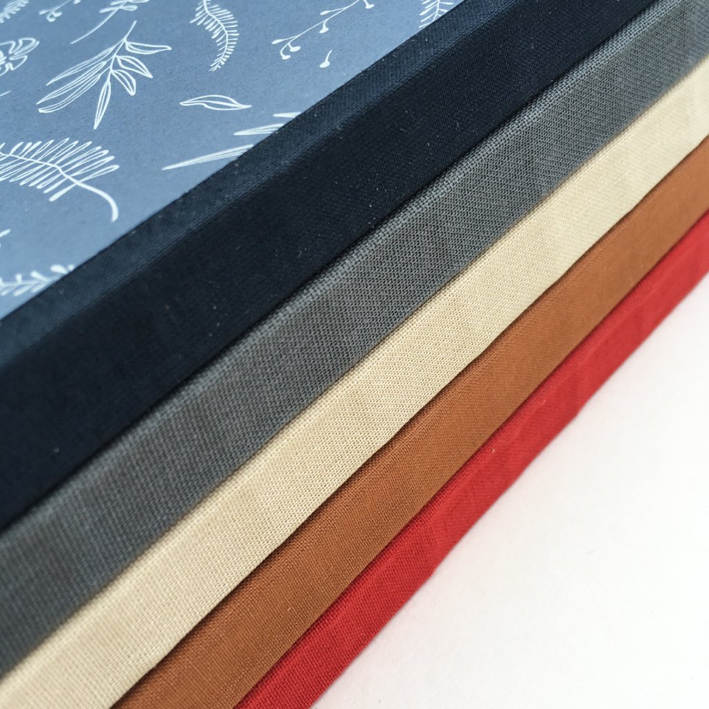 - ručně lepenou obálku zdobí barevné knihařské plátno
