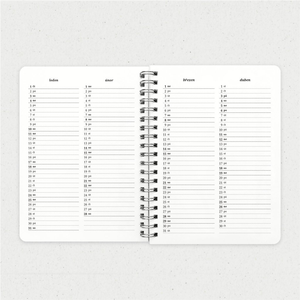 - díky kroužkové vazbě, která vám umožní otevřít diář o 360° budete mít své poznámky stále na očích